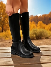 More information about Women's Faux Leather Knee-High Boots with Side Zipper and Low Block Heels, Sleek Urban Fashion Footwear