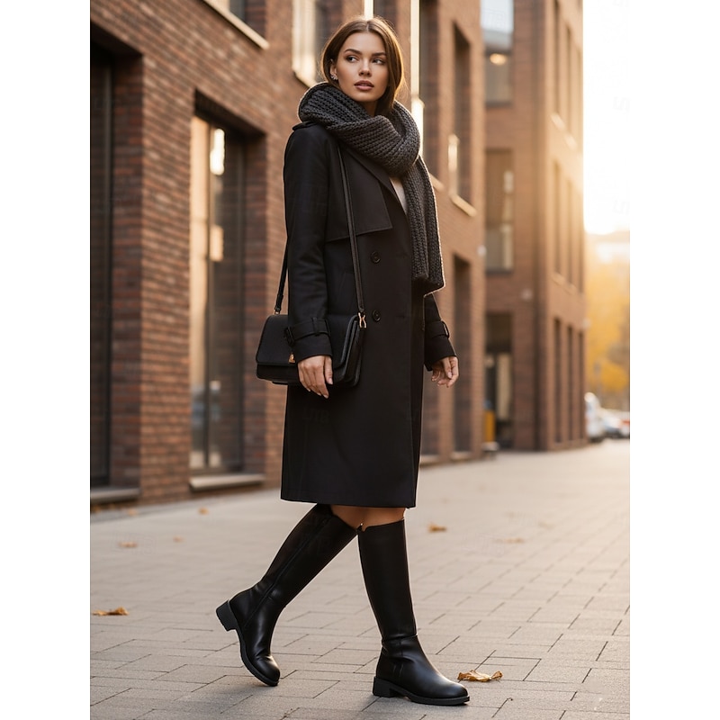Women's Faux Leather Knee-High Boots with Side Zipper and Low Block Heels, Sleek Urban Fashion Footwear 10