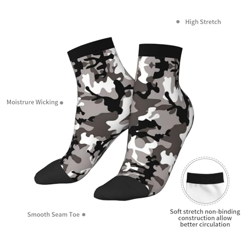• Elastic And Comfortable: The High Elasticity Of The Black Grey White Camo Print Socks Ensures A Snug Fit Without Any Pressure On The Feet, Providing A Comfortable Experience For All-Day Wear.