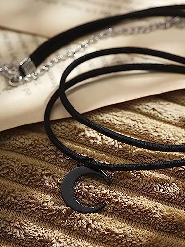 Sacina Gothic Boho Layered Black Crescent Moon Choker, Moon Necklace for Women, Gothic Emo Grunge Necklace, Goth Jewelry, Christmas Jewelry Gift for Women 5