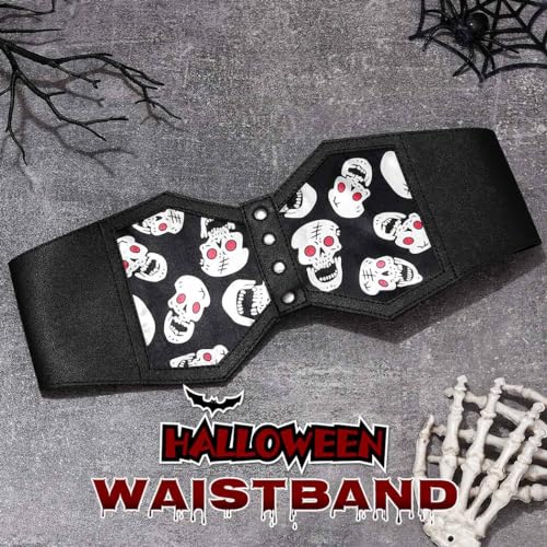 HOT ! COSYDAYS Black Waist Corset Belt Plus Size Halloween Corset Belt Skull Stretch Waistband Accessories for Women