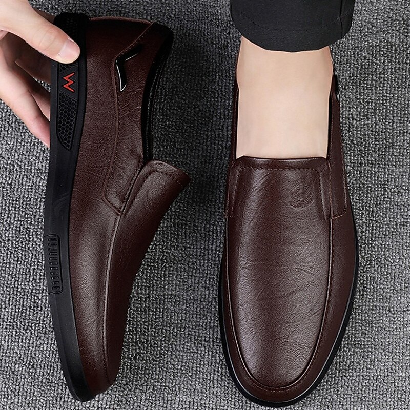 HOT ! Men's Lightweight Brown Slip-On Loafers with Comfortable Sole - Casual Faux Leather Shoes for Daily Wear and Office Style