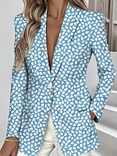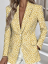 More information about Women's Blazer Warm Pocket Buttons Fashion Daily Casual Geometric Formal Casual Regular Notch Lapel Regular Fit Long Sleeve Outerwear Yellow Pink Blue Spring Fall