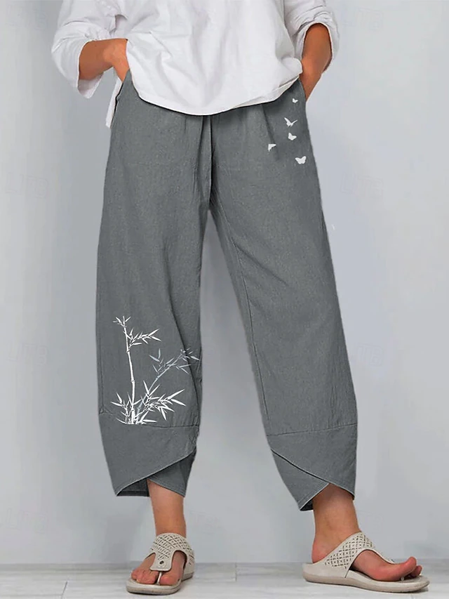 More information about Women's Cotton Linen Pants Pants Trousers Lightweight Casual Ankle-Length Low Rise Graphic Prints Pocket Breathability Comfortable Inelastic Casual Daily Weekend Navy Black ash-colored Summer Spring