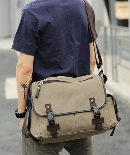 Vintage Canvas Messenger for Men Classic Satchel Shoulder Crossbody Multiple Pockets Anti theft Bookbag College 4