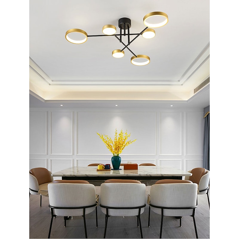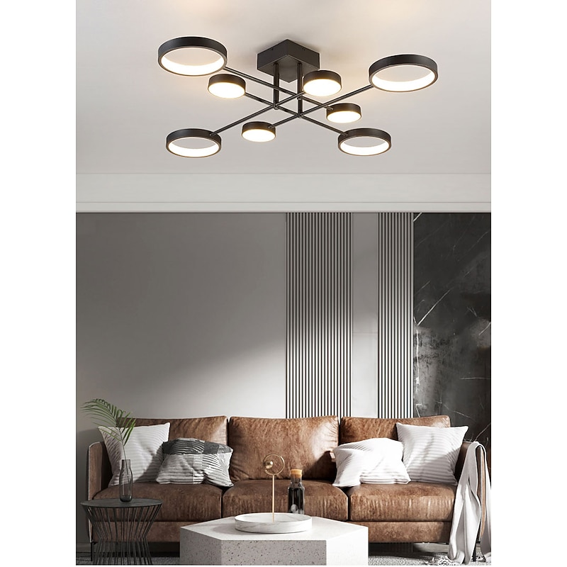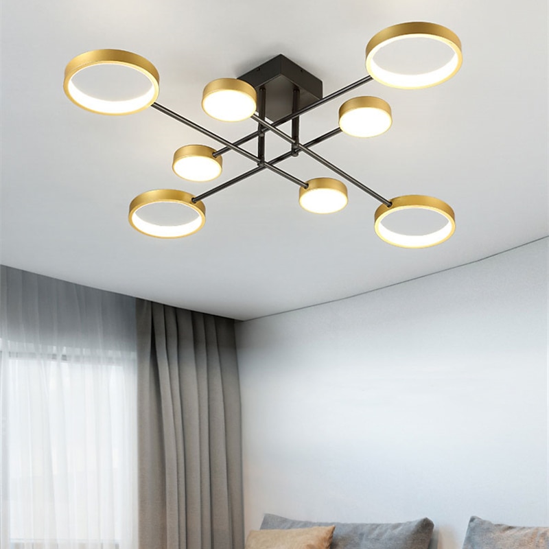 6/8 Heads LED Ceiling Light Modern Black Gold Nordic Circle Sputnik Design Metal Painted Finishes 110-120V 220-240V 7
