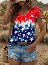 More information about Women's Patriotic Camisole Tank Top Graphic Flag Vintage Stylish Classic Sleeveless Red White And Blue Short Sleeve V Neck Regular Tops Daily Print Red Summer Spring