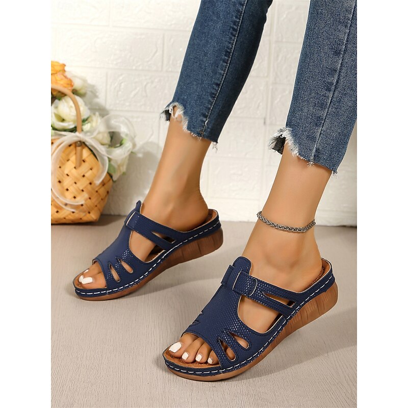 HOT ! Women's Blue Cutout Sandals - Breathable Open-Toe Comfort Slides for Walking & Travel