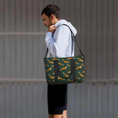• Travel Bags for Women Men: This Dark Green Fox Print sports fitness bag has a stylish appearance and perfect for various activities . It can be used not only as a men's sprot gym bag and travel holdall bag, but also as a women's handbag, Overnight bag, and business travel bag