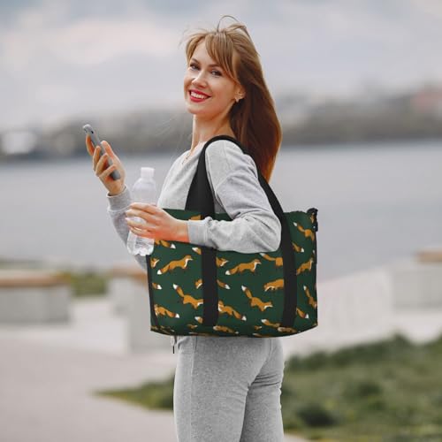 HOT ! Carry On Duffle Bags Overnight Weekender Bags for Women, Dark Green Fox Print Personal Item Travel Bag, Travel Essentials Sport Gym Bag for Men Women