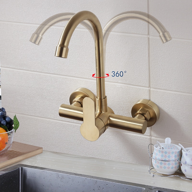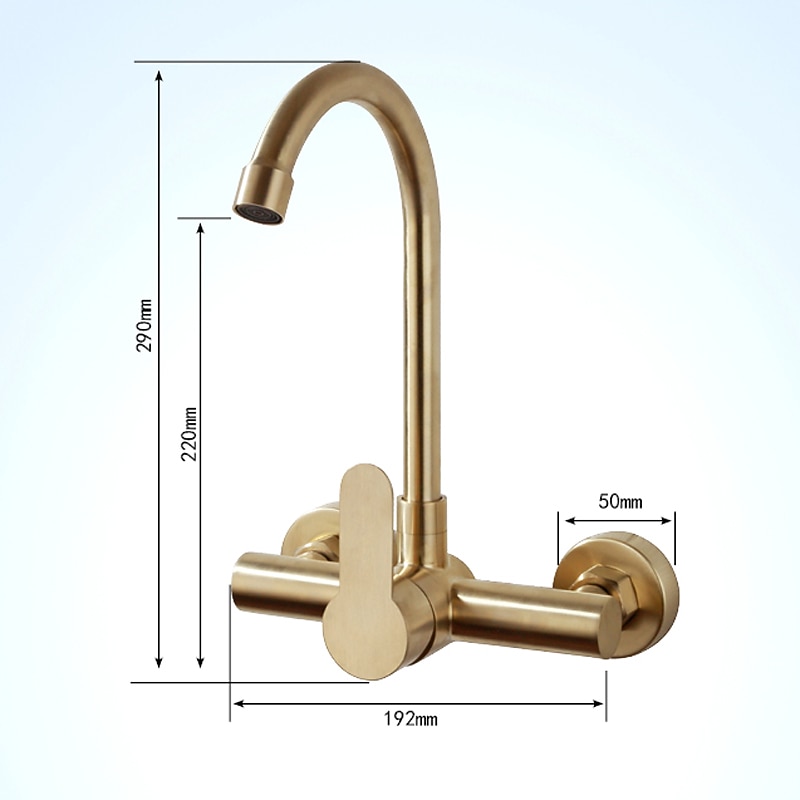 More information about Kitchen faucet - Single Handle Two Holes Brushed Gold Tall /High Arc Wall Mounted Contemporary Kitchen Taps