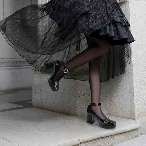 Platform Mary Jane Chunky Heels for Women Closed Toe Heart Goth Shoes Ankle Strap Patent Leather Pumps 6
