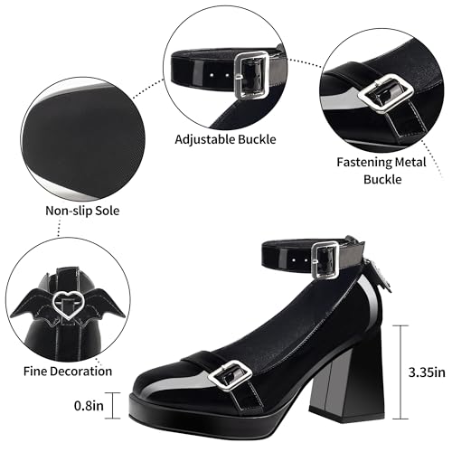 Platform Mary Jane Chunky Heels for Women Closed Toe Heart Goth Shoes Ankle Strap Patent Leather Pumps 5