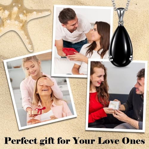More information about Onyx Necklace in 925 Sterling Silver - Black Teardrop Pendant Necklaces for Women - Silver Boho Pendant Birthstone Necklace with Stainless Steel Chain - 20" Birthday Gifts for Women