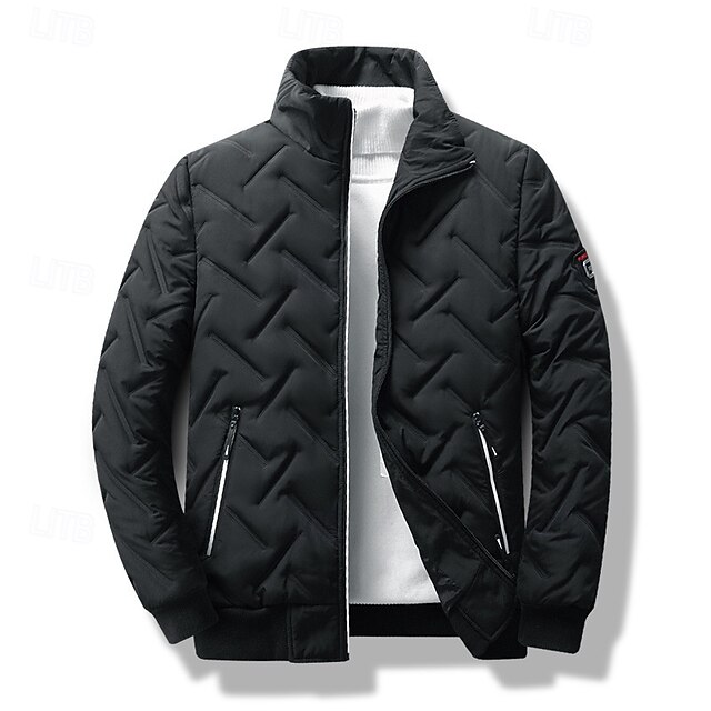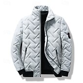 More information about Men's Winter Coat Quilted Jacket Parka Pocket Polyster Vacation Daily Wear Date Regular Fashion Casual Comfortable Thermal Warm Winter Solid / Plain Color Black Green Gray Puffer Jacket