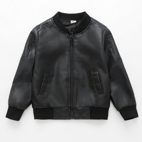 Boys Fashion PU Leather Motorcycle Jacket kids Faux Leather Jackets Coat Children's Outerwear Black 3-13 Years 6