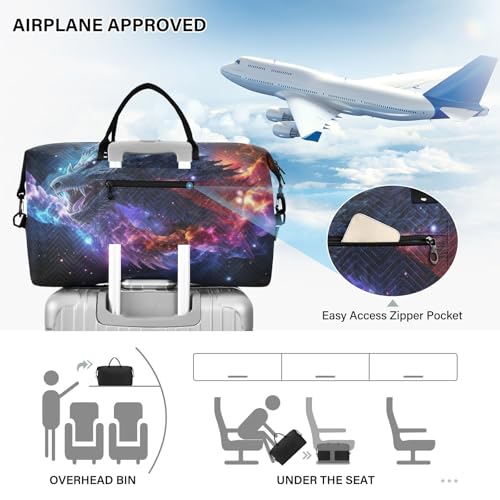 Dragon Galaxy Black Large Travel Duffel Bag, Sports Tote Gym Bag, Shoulder Weekender Overnight Bag for Women Men, Carry On Luggage with Toiletry Bags 7