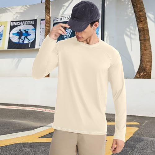 UPF 50+ Long Sleeve Sun Shirt Loose UV Sun Protection Running Fishing Blanched Almond White 6