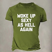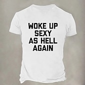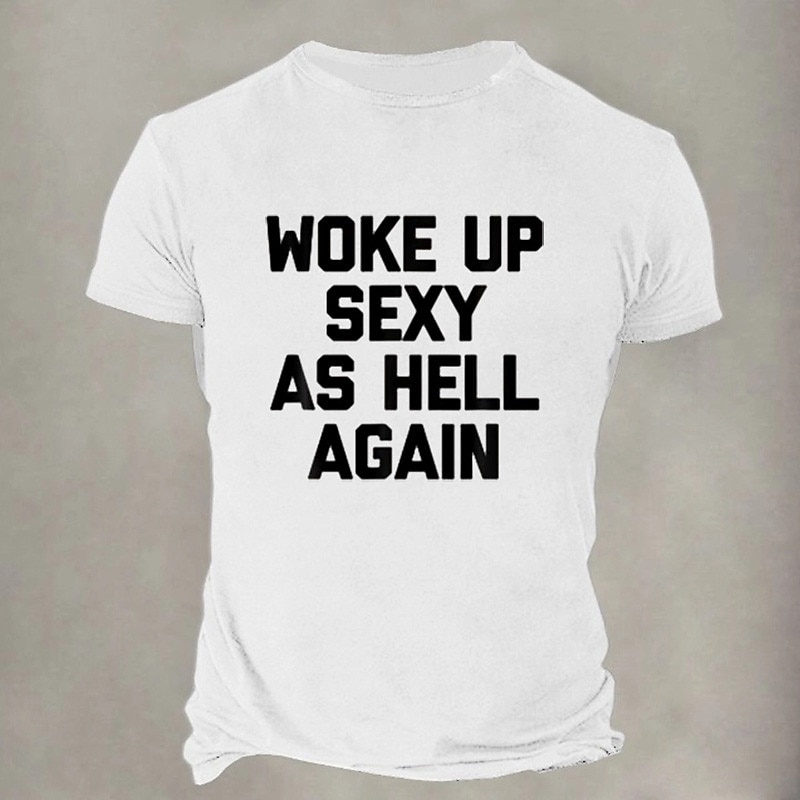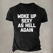 HOT ! Men's Short Sleeve Graphic T-Shirt | Funny 'Woke Up Sexy As Hell Again' Confident Lifestyle Tee
