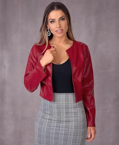 KRISP Women PU Leather Cropped Jacket Long Sleeve Bolero 1