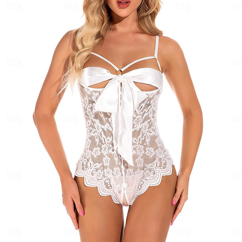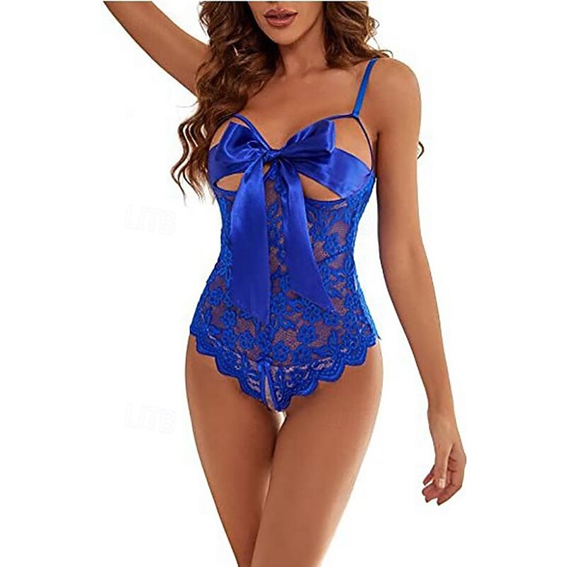 Highlights [Fabric]: Crafted from a luxurious blend of Spandex and POLY, this women's lingerie set offers a delicate, thin texture that provides both comfort and a seductive feel. The solid-colored design exudes a classic, timeless allure suitable for any season, be it Spring, Summer, Fall, or Winter. [Fit]: Designed to highlight and flatter natural curves, this bodysuit boasts a body-hugging silhouette that emphasizes a sensual and confident look. The micro-elastic fabric ensures flexibility and a perfect fit for different body shapes. [Design Highlights]: Featuring intricate lace with floral patterns, this lingerie set is both elegant and alluring. The prominent satin bow at the front serves as a playful accent, while the backless design enhances its sophisticated and seductive appeal. Adjustable spaghetti straps and scalloped edges add to its intricate beauty and ensure a customizable fit. [Occasions]: Ideal for special occasions or as a chic addition to your intimate apparel collection. Whether it's for a romantic evening or simply to feel extra elegant at home, this piece adds charm and allure to any setting. [Size Availability]: Available in a wide range of sizes including S, M, L, XL, XXL, and 3XL, ensuring a perfect fit for a variety of body types.