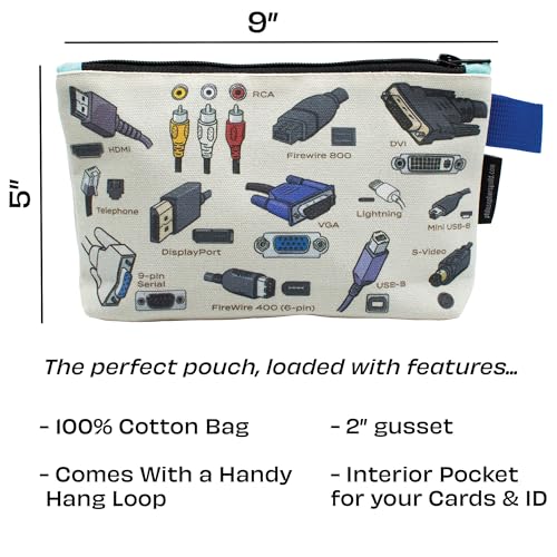 HOT ! The Unemployed Philosophers Guild Cables and Ports Bag - 9" Canvas Zipper Pouch for Pencils, Tools, Cosmetics, Toiletries and More