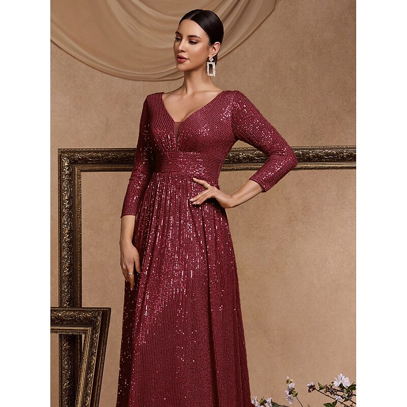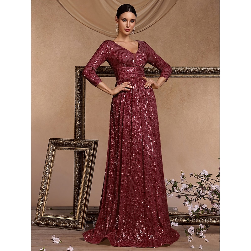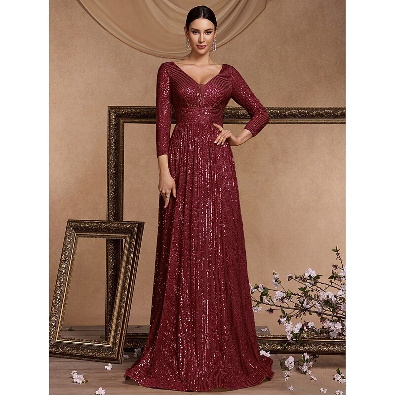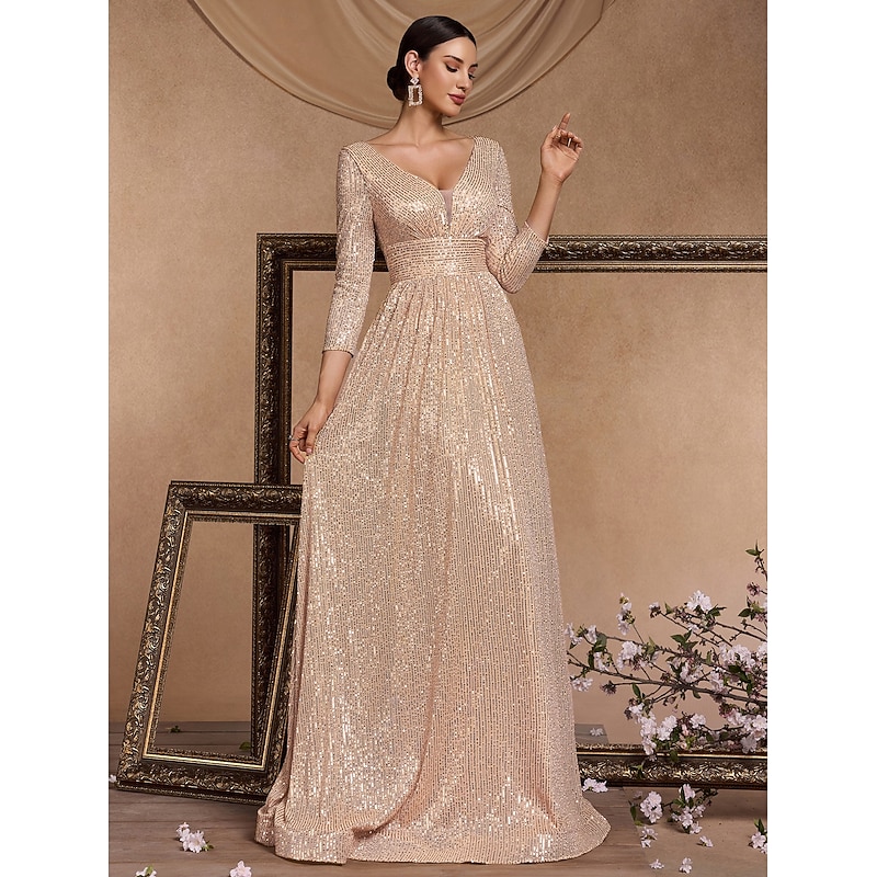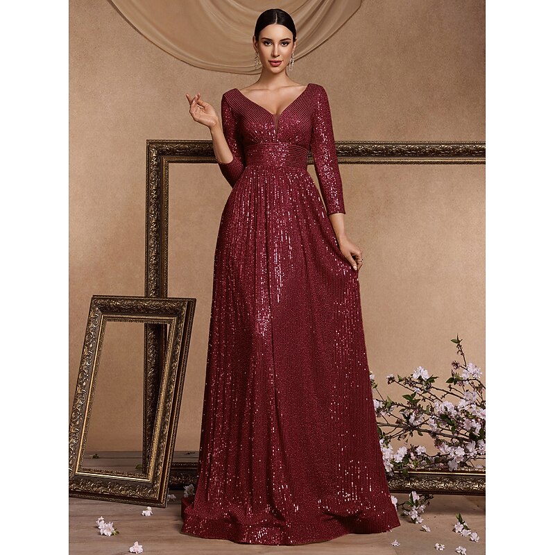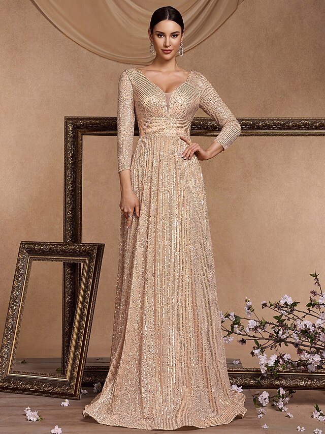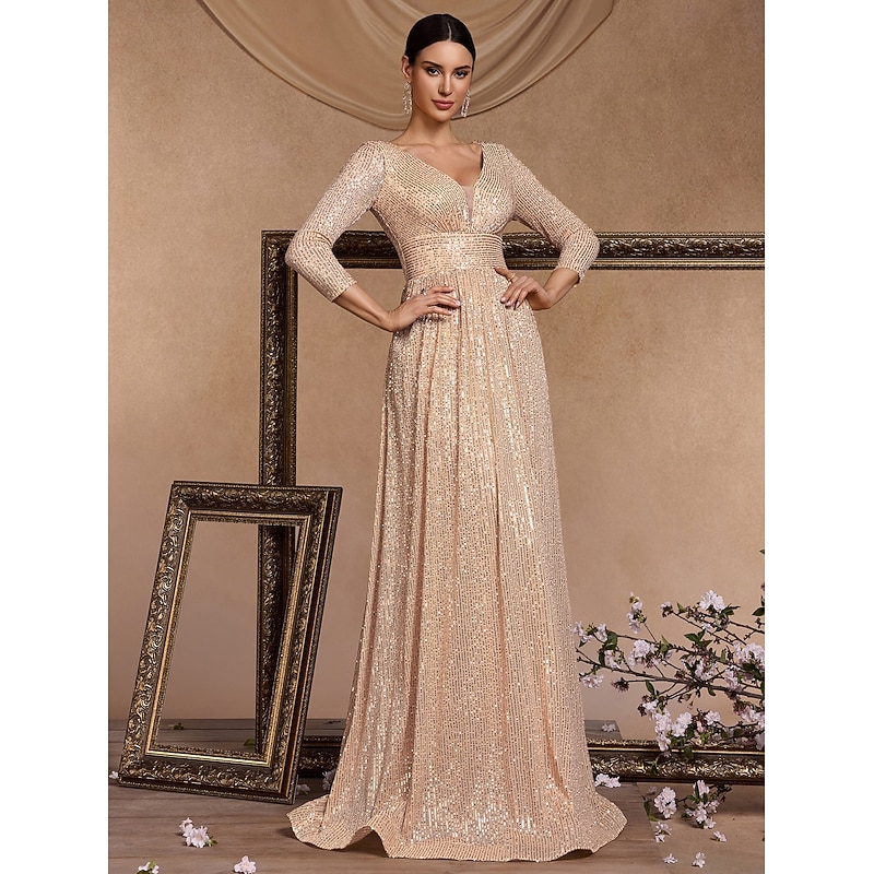 $94.99 - A-Line Evening Gown Party Dress Evening Party Floor Length 3/4 Length Sleeve V Neck Sequined with Sequin 2025. Shop for cheap Semi-formal / Cocktail online? Buy at lightinthebox.com on sale today!