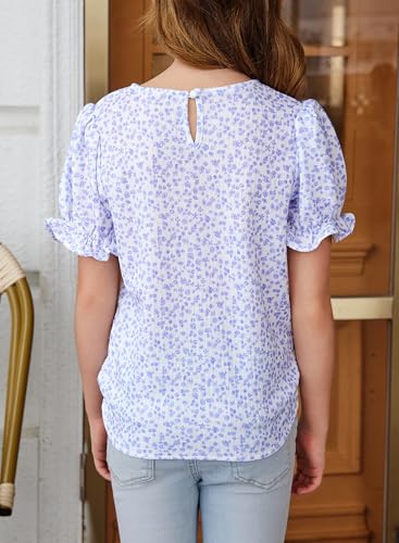 blibean Tween Girls 2024 Boho Floral Puff Sleeve Shirt Size 6-15 Years 2