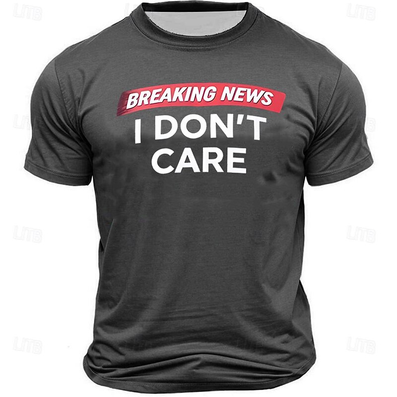 HOT ! Men's Graphic T-Shirt 'Breaking News I Don't Care' Funny Sarcastic Short Sleeve Attitude Tee