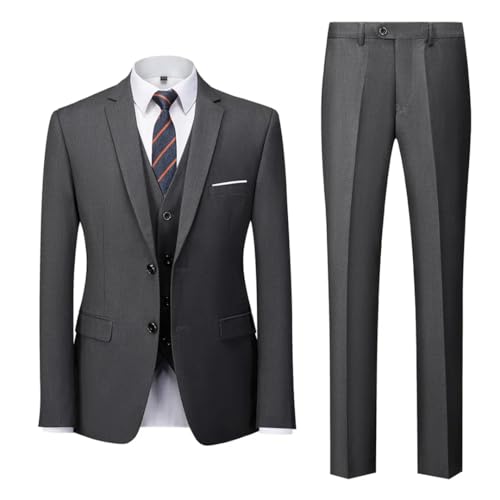 • [Three-Piece Set] - Jacket+Vest+Pants 2-Button Suit Regular Fit, Notched Lapel Tuxedo, 2 Front Flap Pockets And 2 Inner Pockets, Four-Button Cuffs, 1 Chest Pocket, Side Vents, Natural Shape Soft Shoulder Pads. Flat Front Design Suit Trousers, Elastic Band, Zipper Design, Classic Men's Suit.