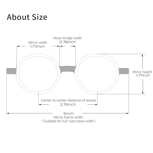 • Dimensions: Lens Width: 45 mm, Frame Height: 45 mm, Nose Bridge: 20 mm, Frame Width: 127 mm