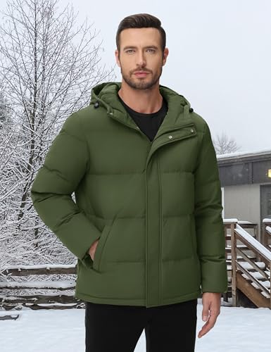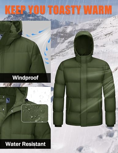 Cotrasen Men's Puffer Jacket Hooded Down Jacket Water Resistant Windproof Winter Outwear Full Zip Up Warm Winter Coat 1