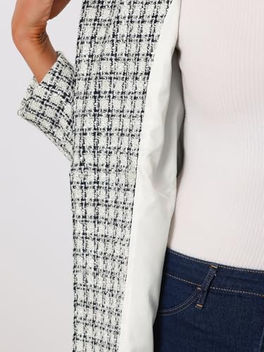 Allegra K Women's Tweed Blazers Elegant Double Breasted Long Jacket Outerwear Plaid Coat 4