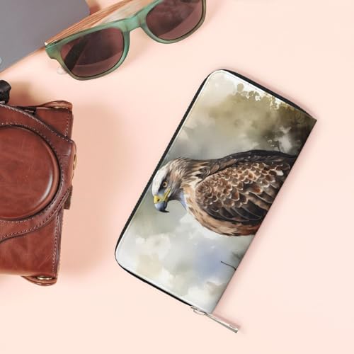 HOT ! Pu Leather Wallet For Women Girl, Zip Around Credit Card Holder Watercolor Of Hawk Long Wallet Clutch Purse Waterproof Travel Handbag