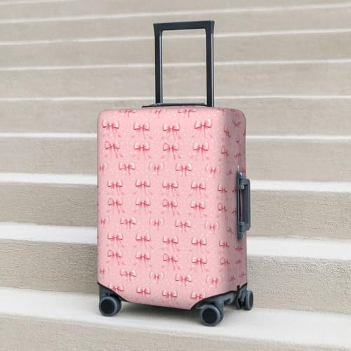 Pink Bow Polka Dots Print Travel Luggage Covers, Washable Suitcase Covers Protector for Luggage 18-32 Inch High Elasticity 7