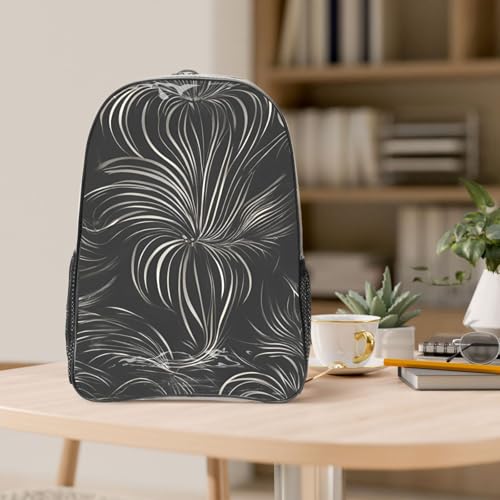 • Convenient Side Pouches: Equipped with two side pouches, this Modern Print clear backpack is for holding water bottles, umbrellas, or small foldable items, ensuring easy access and organization during travel or outdoor activities.