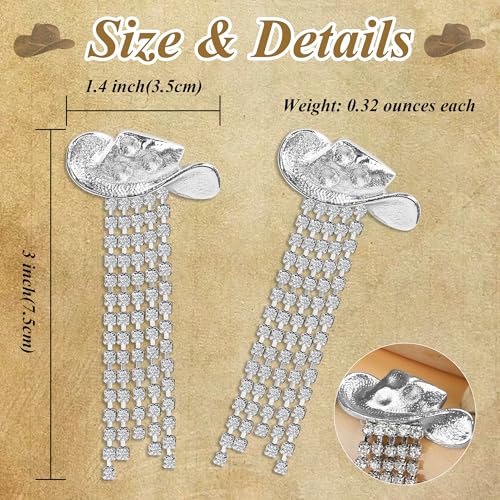 Western Cowgirl Earrings for women, Silver Rhinestone Dangle Earrings as Rodeo Country Concert Outfits for Women, Sparkly Western Boots Jewelry Cowboy Hats as Summer Concert Accessories 4