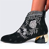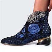 More information about Women's Rhinestone Embellished Floral Jacquard Ankle Boots - Elegant Blue Velvet Heels for Evening Events