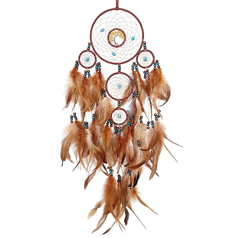 Dream Catcher Handmade Gift Feather Hook Flower Wind Chime with Five Circles Ornament Wall Hanging Decor Art Boho Style 15x80cm/6''x31.5'' 5