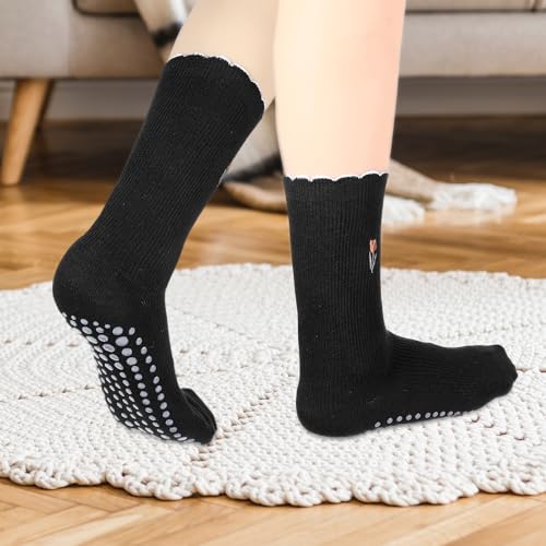 • 【Stylish & Functional】The 1-pair black grip socks combine a charming ruffle cuff and playful embroidery patterns with practical silicone traction pads, ensuring a fashionable yet functional addition to workouts. The retro-inspired design complements yoga, ballet, or casual wear, while the material offers breathability and stretch for unrestricted movement.