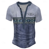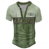 More information about Men's Geometric Tribal T Shirt Henley Shirt Tee Short Sleeve Designer Basic Classic Outdoor Casual Daily Summer Gray Green Light Blue Khaki Henley Henley T-Shirt