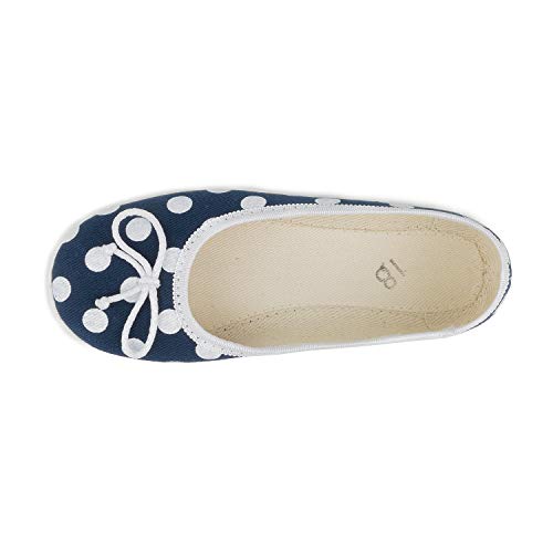 More information about Kamila 1383 Little Girls' Polka Dots Navy Blue Natural Canvas Ballet Flat