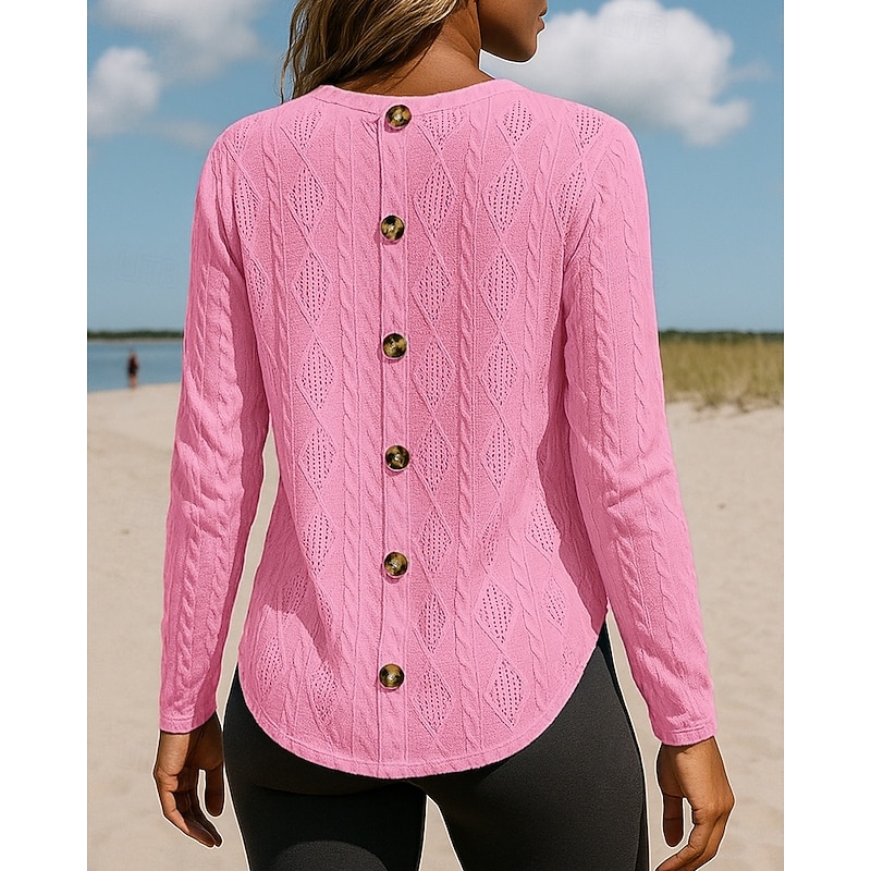More information about Women's Pullover Sweatshirt Casual Tops Hollow Long Sleeve Tee Tshirt Casual Athleisure Fall Solid Colored Breathable Outdoor Travel Sports Sportswear Activewear Black White Pink