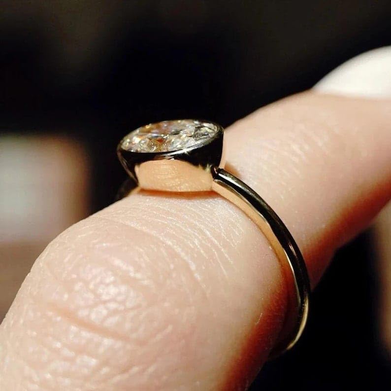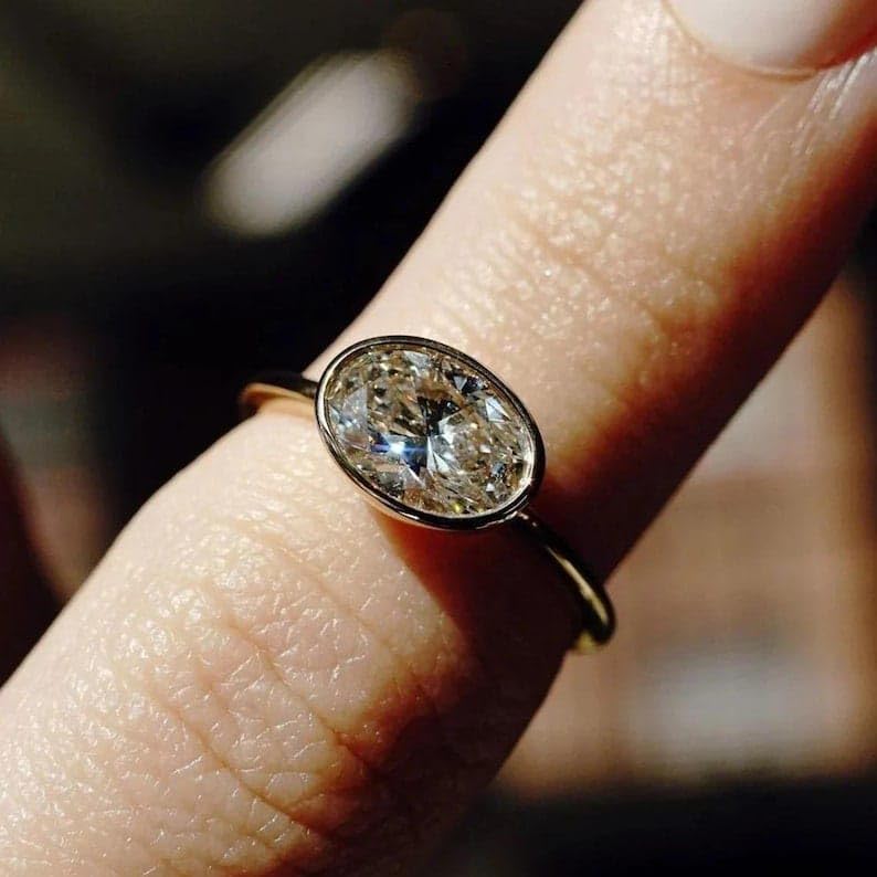 • Introducing the elegant 3.00 Carat Oval Cut Lab Grown Diamond Engagement Ring, featuring diamond in a sleek bezel setting. Crafted in 925 Sterling Silver, this ring combines modern design with timeless sophistication, making it the perfect symbol of love and commitment.