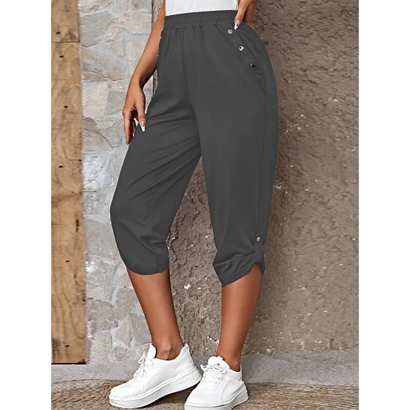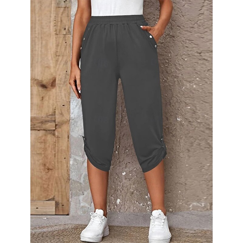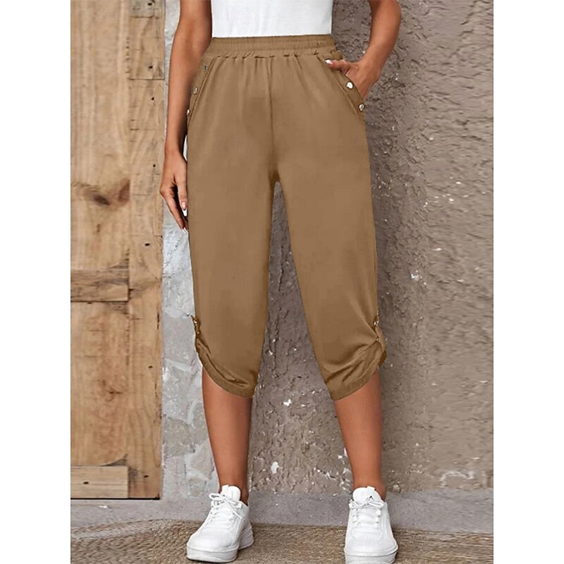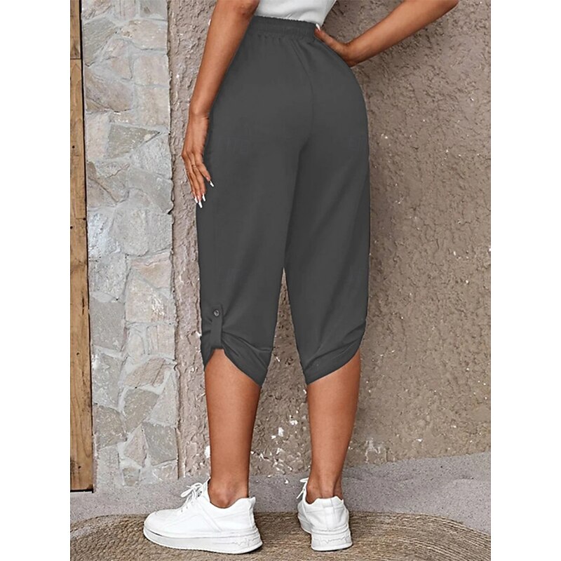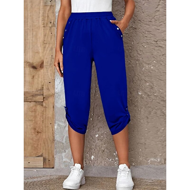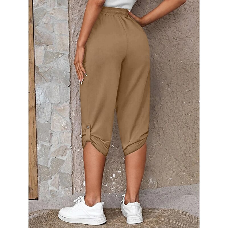 More information about Women's Capri Pants Chinos Fashion Streetwear Casual Calf-Length High Waist Plain Pocket Elastic Waistband Comfy Soft Comfortable Micro-elastic Outdoor Street Blue Khaki Army Green Dark Gray Summer