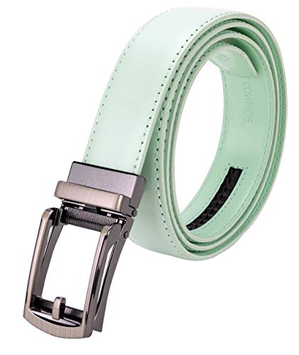 HOT ! Women's Leather Ratchet Belt, Trim to Fit 18"- 44" Waist, No Holes, Packed in a Gift Box (W726X Mint Green, 30mm Wide)