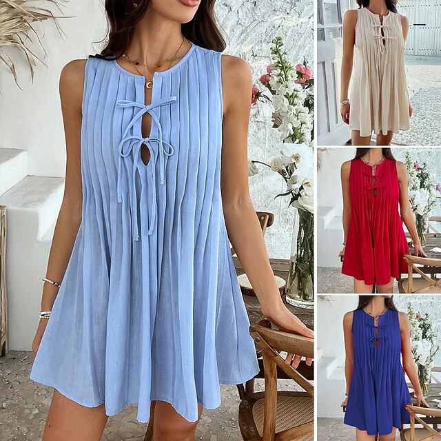Women's Mini Dress Petite Dress Casual Dress Tank Dress Summer Dress Fashion Classic Modern Daily Holiday Weekend Regular Fit Plain Sleeveless Crew Neck Black Red Royal Blue Apricot Summer 13