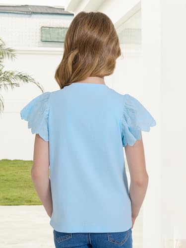 WULFUL Girls Shirts Fashion Cotton Summer Short Sleeve Tops Casual T-Shirts 4-15 Years Old 6