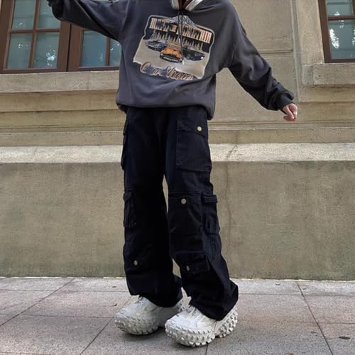 • Design: Y2K fashionable workwear pants are designed with multiple pockets of different sizes, which are practical and beautiful. Zipper and button closure, loose and wide legs, straight leg design, suitable for various leg types.