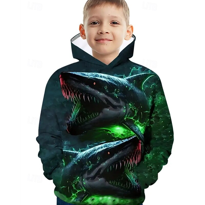 HOT ! Boys' 3D Animal Dinosaur Hoodie Long Sleeve Spring Fall Fashion Streetwear Kids 4-12 Years Hooded Outdoor Casual Daily Regular Fit